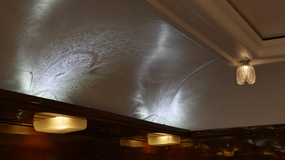 | La scénographie lumière créée au sein des mythiques voitures de luxe de l’Orient-Express rend à chaque motif décoratif, à chaque matériau précieux, sa somptuosité d’antan. Les sources lumineuses sont dissimulées au plus près de la matière et projettent les minutieux détails des verres Lalique, laiton, cuivre, bois etc.. D’aspérités en ciselures, de transparence en reflets, de nervures en bosselages, les gestes décoratifs du XXe siècle se déploient à nouveau en lumière. En subtiles variations de nuances blanches épousant le cycle solaire, les led miniatures prennent ainsi part à l’œuvre d’art globale. |